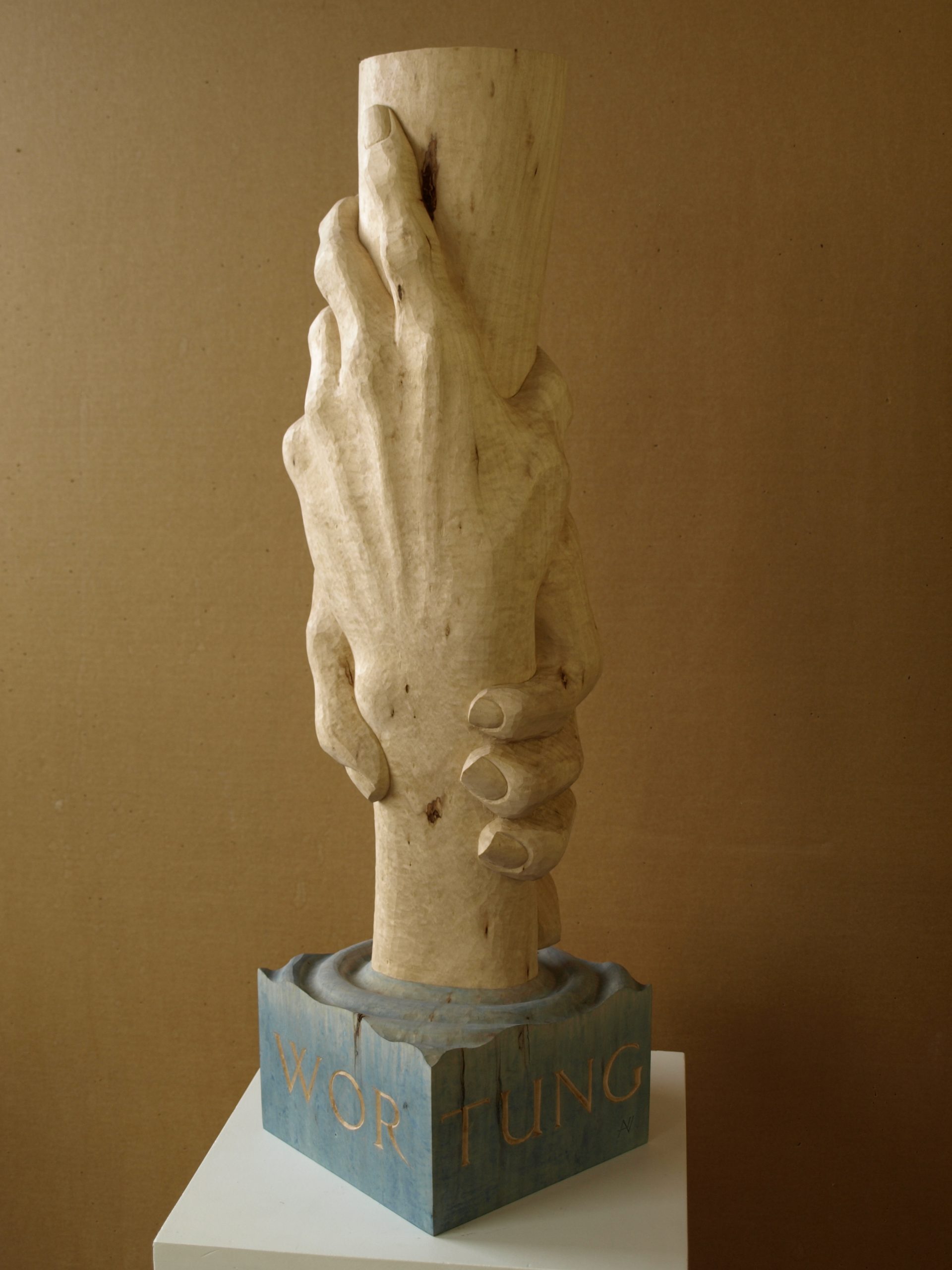 Das Material Holz fasziniert mich nach wie vor durch seine individuelle Struktur und Maserung, bei einer angenehm warmen Wirkung. Dieser ganz eigene Charakter eines jeden Holzstücks hat einen großen Einfluss auf das Endergebnis meiner Skulpturen, den ich sehr zu schätzen weiß.